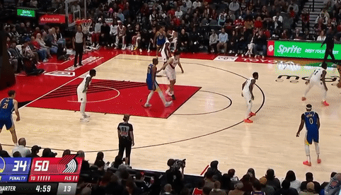第三节开拓者卡莱布-乐福拿下6分,勇士斯蒂芬-库里拿下13分,第三节结束开拓者87-91落后勇士