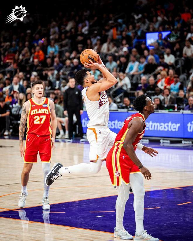 太阳过去5场豪取5连胜,老鹰过去4场收获4连胜。本场太阳缺少杰伦-格林与阿伦,老鹰缺少特雷-杨与波尔津吉斯。首节开局太阳9-10落后,老鹰多点开花一波9-1攻势拉开8分领先优势,太阳之后以15-22落后。布克接连冲击内线追分,首节比赛结束太阳21-25落后老鹰。首节老鹰20中8,其中三分12中4,太阳28中8,其中三分12中1,布克打满12分钟9中4得到12+2+2,布克三分4中0,狄龙6中1仅得到3分。
