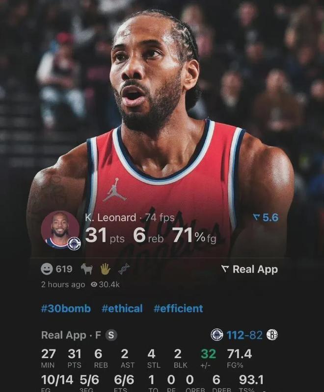 必须承认健康版本的伦纳德真强真稳,本赛季至今场均砍下24.3分5.7板3.5助2.5断,当今联盟为数不多攻防一体的核心前锋,三项命中率50.5%、40%和96.3%,跨入180俱乐部,无奈不怎么打球。