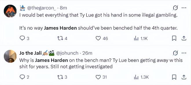 2.为什么詹姆斯-哈登被安排坐在替补席上?泰·卢多年来一直这么操作,却从未受到调查。这到底是怎么回事?